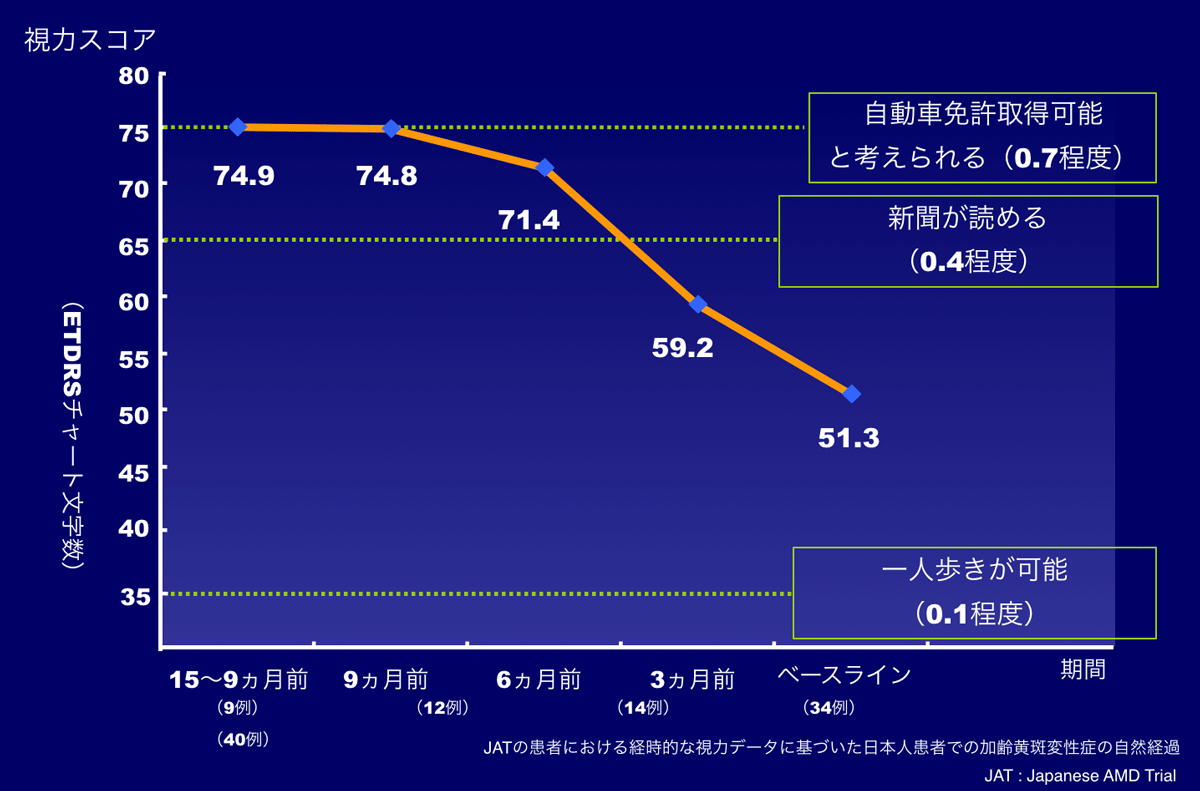 - 日本での滲出型加齢黄斑変性症の患者さん数は、推定70万人。