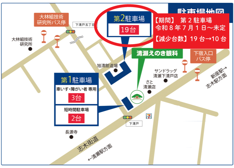 このたび、第2駐車場の一部区画整理を行う関係により、 駐車可能台数が減少いたします。
